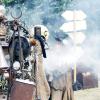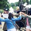 C’est un spectacle d’inspiration cinématographique, muet, autonome et en solo. Le spectacle se passe en déambulation avec un scooter apprêté et un attelage au décor baroque.