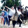 C’est un spectacle d’inspiration cinématographique, muet, autonome et en solo. Le spectacle se passe en déambulation avec un scooter apprêté et un attelage au décor baroque.